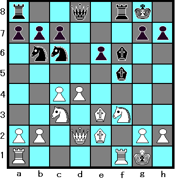 | 2 Nc3 で、別の定跡に変化します。 白はポーンを進めすぎると、形勢が悪くなるので程々に。 |