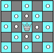 女王様。タテ・ヨコ・ナナメ好きな方向に、好きなだけ動けます。王様(男性)より女王様(女性)の方が強いところは、現実世界と同じ。 | ![]() |