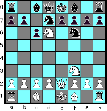 1 e4 c6 , 2 Nc3 d5 , 3 Nf3 de ,