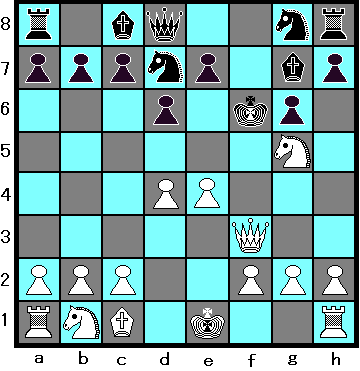 1 d4 d6 , 2 Nf3 Nd7 , 3 e4 g6 , 4 Bg4 Bg7?? ,