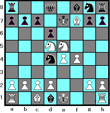 5 Nc3 Nd4? , 6 N:e5 B:d1 , 7 B:f7+ Ke7 , 8 Nd5#
