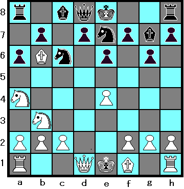 7 Nb3 Ne7? , 8 Na4! Nbc6? , 9 Bb6