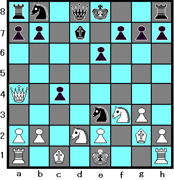 8 K:f2 Ng4+ , 9 Ke1 Ne3 , 10 Qa4+ Bd7