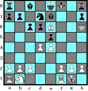 5 Ng5 Nh6 , 6 o-o Be7? , 7 Ne6! Fe , 8 B:h6 gh?? ,