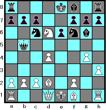 9 Ne5 Nc6?? , 10 Nb5 Qb6 , 11 Nc4 Q:b5 , 12 Nd6+