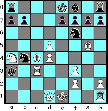 5 Nc3 Nc6 , 6 Bg5 Qb6 , 7 cd Q:b2 ,